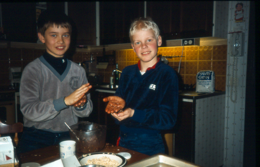 Förutom mina kusiner och grabbarna i grannhusen var det de närmaste vännerna från klassen som betydde mycket för mig när jag var liten. En period var det Oscar O, senare var det Peter M (som finns på båda bilderna nedan) och därefter umgicks jag med Fredrik J. Jag och Fredrik, “Fredda”, brukade köpa en blåbärspaj ihop, och till traditionen hörde att pajen skulle delas med Fredas nycklar på övervåningen på shoppingcentrar Ryttaren i Falköping. Jag har varit oerhört lyckligt lottad när det gäller vänner. Numer är det Stefan B som, tillsammans med Thomas H, är att betrakta som mina närmaste vänner. Saker förändras när man skaffar familj, men jag är glad att jag fortfarande har kvar så många bekantskaper.