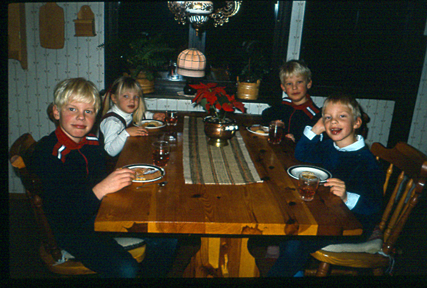 Mina närmaste vänner gick i samma klass som mig. Den ena röda tröjan sitter på Oscar L och den andra på Peter M. Den andra bilden är på mina småkusiner Jesper F och Kajsa F, samt på min lillebror.