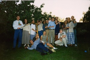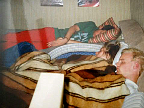 Jag hade läst något år på högskolan när Tomas M bjöd mig till ett partaj i hans föräldrars stuga vid en sjö. Jag är Emil G ett tack skyldig, eftersom vi är lika invärtes och han valde att sova UTANFÖR sovrummet. Annars kanske jag inte hade varit gift idag. Det hela var väldigt trevligt, men möjligen var antalet sovplatser inte matchade med antalet deltagare på festen. Därför kom fem av oss att somna i en säng som maximalt var gjord för 1 ½ människa. En av de fem var mitt livs kärlek, men det begrep jag inte när vi somnade.