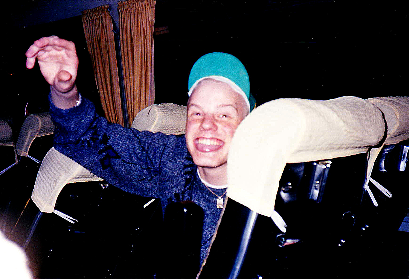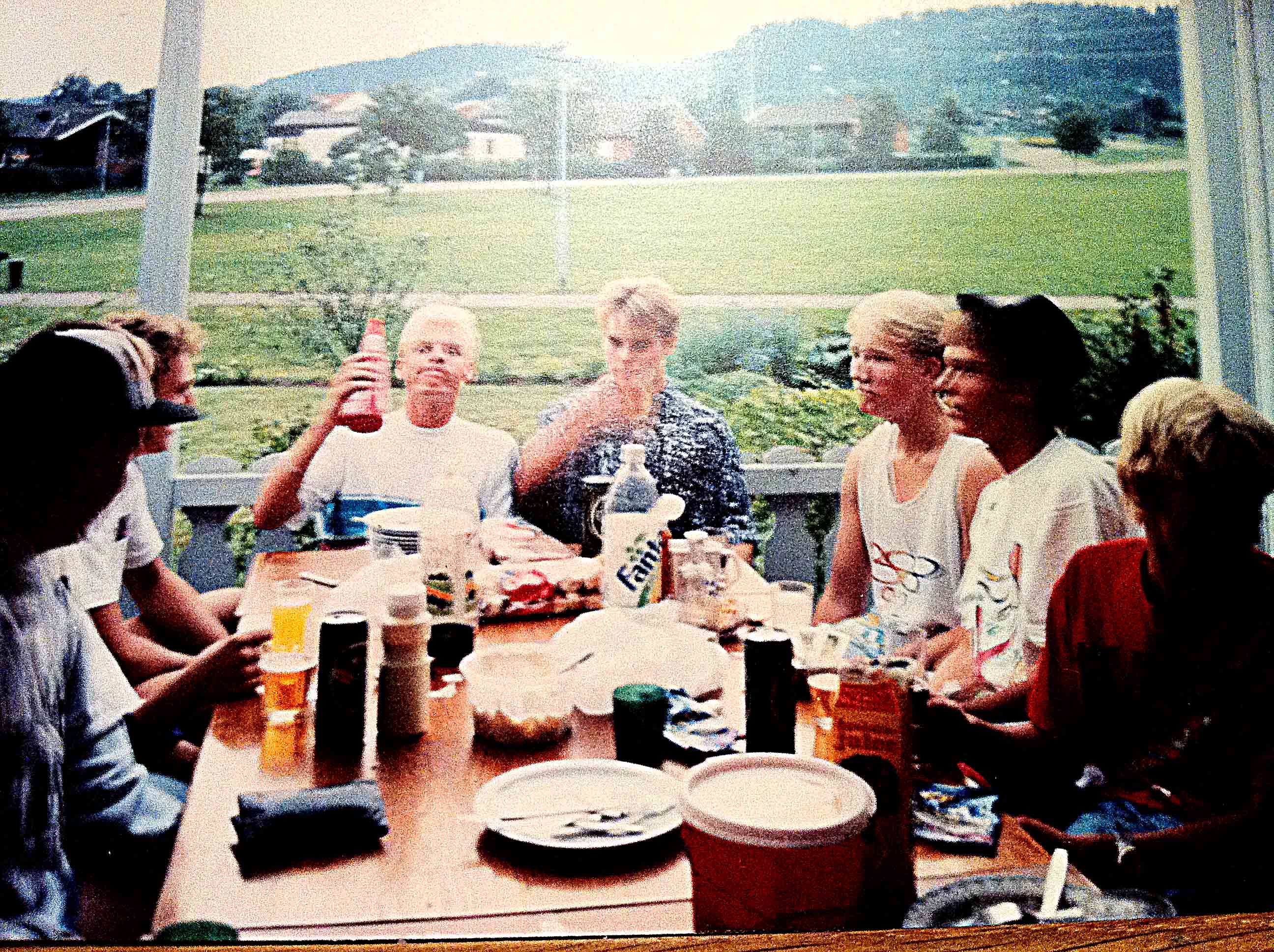 Hur ligger det egentligen till med min alkoholkonsumtion? Många har under årens lopp frågat men inte trott på det svar jag har haft. Sanningen är att jag inte dricker alkohol. Sanningen är att jag aldrig ens har smakat på alkohol. Sanningen är att jag aldrig ens haft en önskan att testa. Vad beror denna inställning på? Jag vet inte riktigt, uppriktigt sagt. Mitt minne, som kanske inte är helt korrekt, är att de sista från klassen i nian som hade samma inställning som mig till alkohol, ändå testade på skolavslutningen i nian. Kanske ville jag vara märkvärdig och unik, kanske fattade jag aldrig grejen med alkohol. Under alla omständigheter har många vänner erbjudit sig att bekosta min första fylla den dagen jag “kommer till insikt och super till”. Det kommer aldrig att ske, kan jag avslöja. Däremot har jag alltid roats av att LÅTSAS vara full. Bilden illustrerar en förfest innan parken, och jag har tydligen valt ketchup i flaskan. På bilden finns också Peter A, Fredrik J, Ola S, Mattias G, Emil G, Mikael O (Bean) samt fotografen John S. Jag var chef för bilen. Härligt!