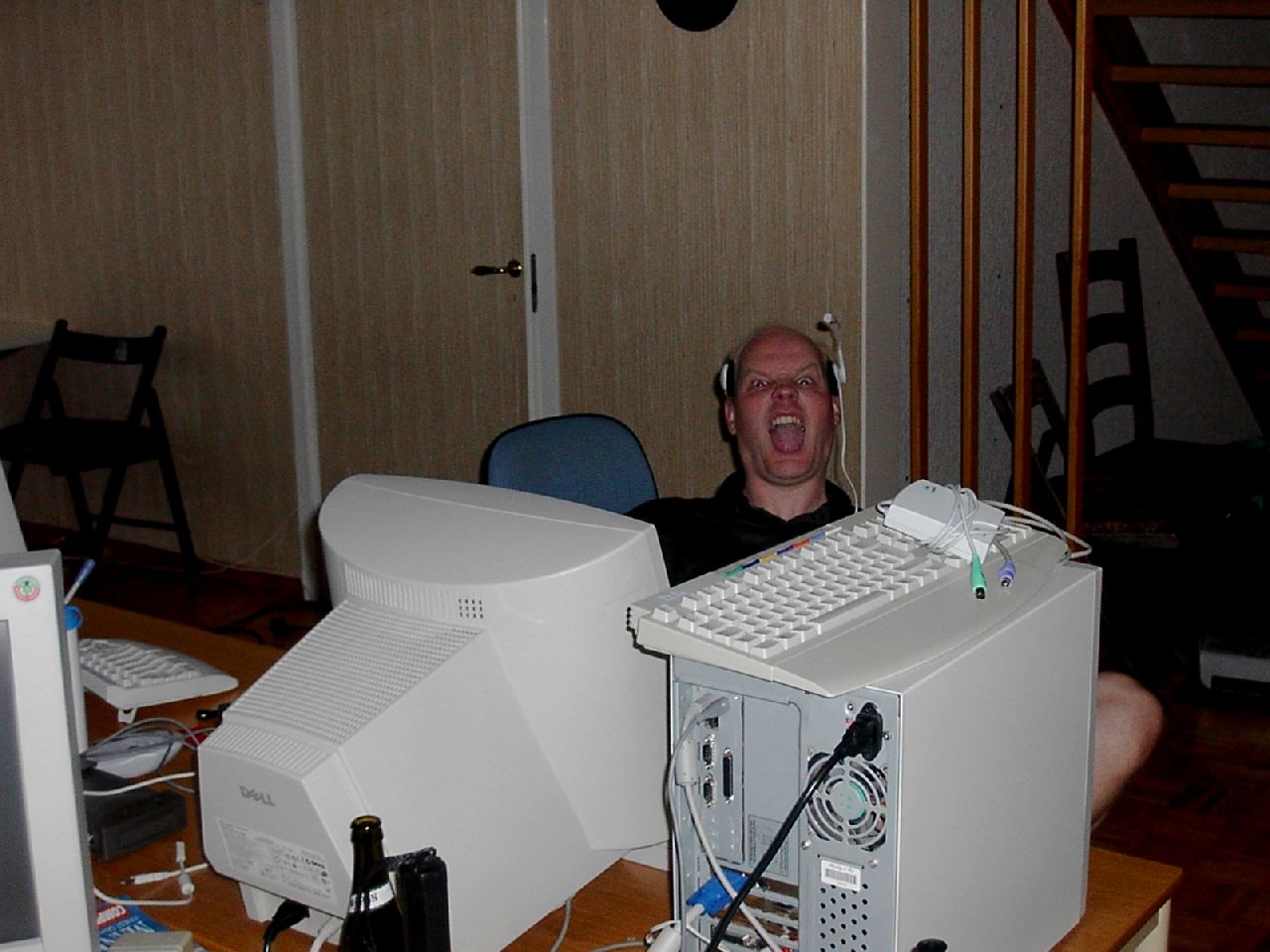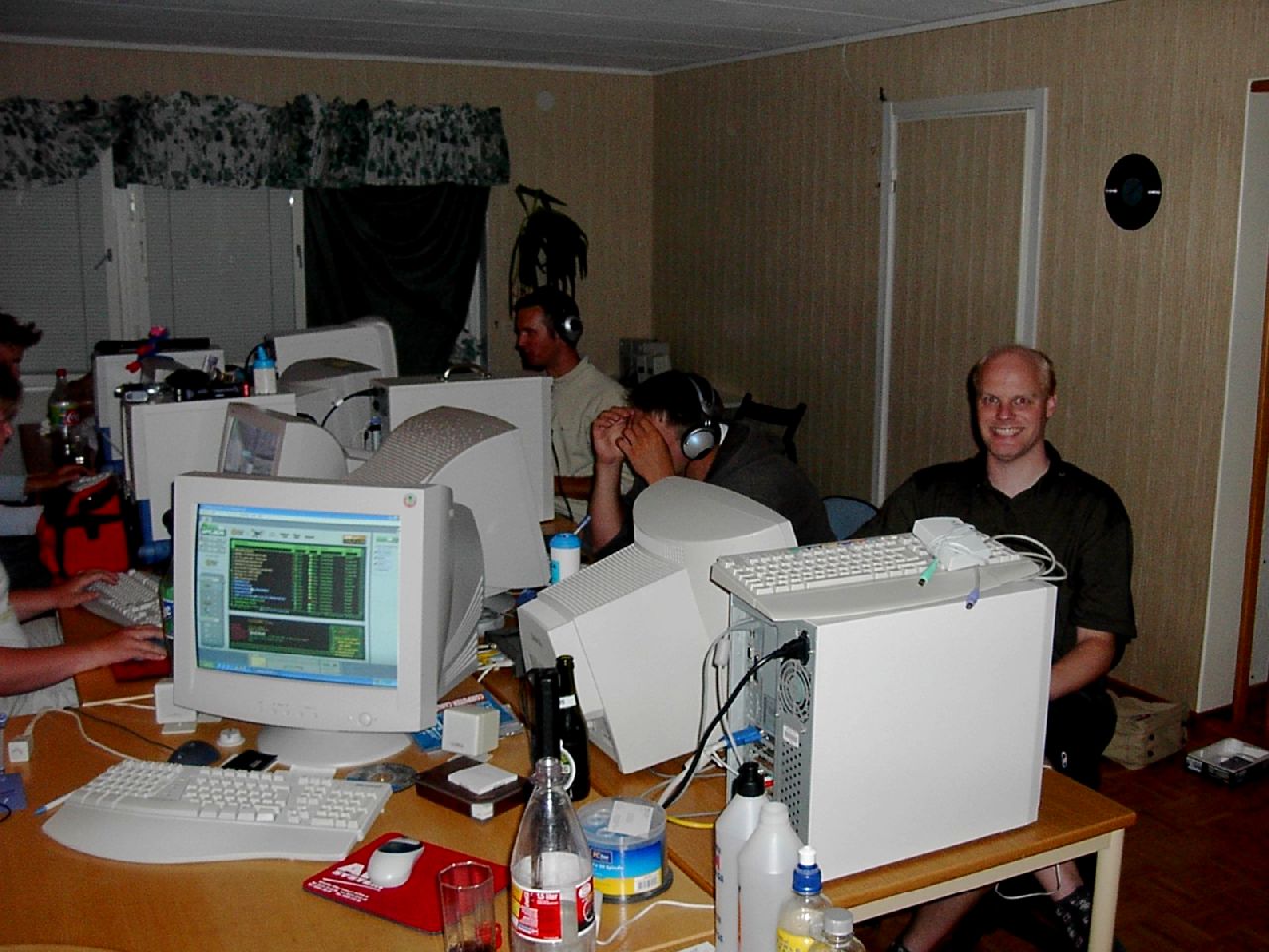 år satt jag, husägaren Bjarne P, Mattias S och diverse löst folk vid olika tillfällen och spelade med datorerna varje söndag.