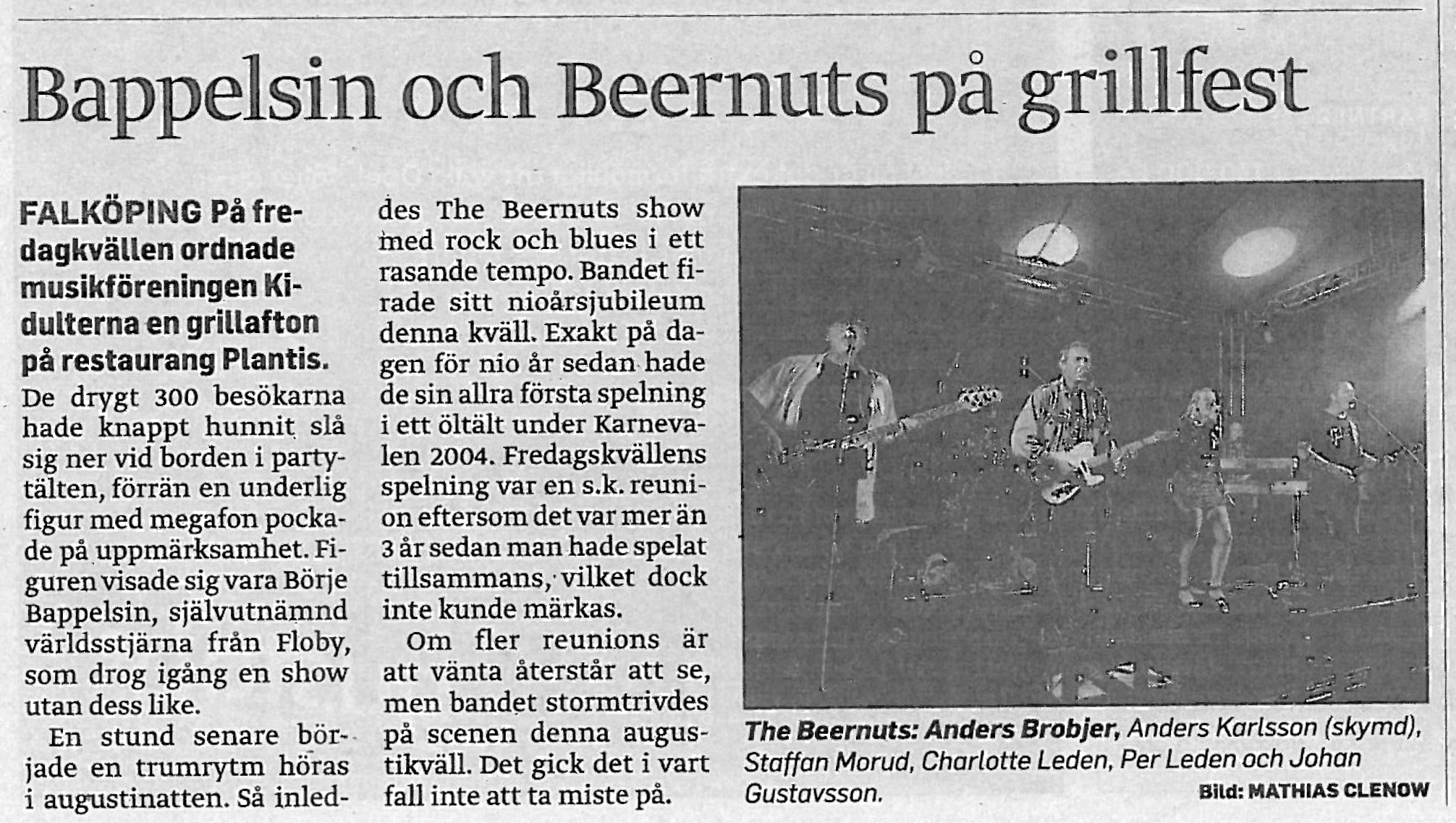 Vännen och spelkollegan Anders B bad mig under hösten att fotografera en utomhusspelning han och några till hade. Jag svarade ja omedelbart, och hade förväntat mig ganska bra musik mot en ljusgrå himmel. Som vanligt hade jag fel. Musiken och musikanterna var något av det absolut bästa jag har hört under alla år i Falköping med omnejd, och eftersom spelningen var så sent på kvällen var allt svart överallt, utom på scenen. Det gav mig en utmaning och det tog mig en stund att klara. Bilderna i sådana här situationer blir inte så som man önskar sig om man använder blixt. Bilderna finns på länken nedan, tillsammans med Anders inspelning av en av låtarna.