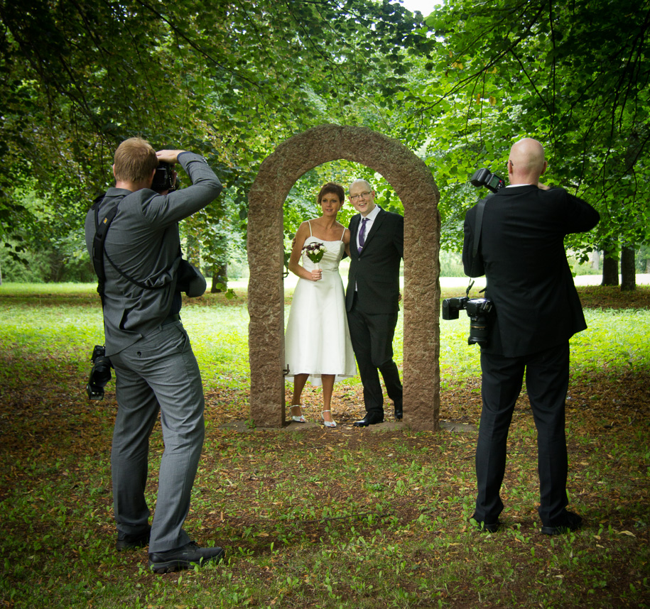 Endast vid ett enda tillfälle var situationen den omvända, alltså jag som räddade en viss typ av bild, vilket jag fortfarande är omåttligt stolt över. Tillsammans har vi fotat en massa bröllop och varit med om flera bra kurser. Ett minnesvärt bröllop var vi med om på Billingehus i Skövde. Vi brukar alltid se över kyrkan och omgivningarna först, och oftast vill brudparet fotas